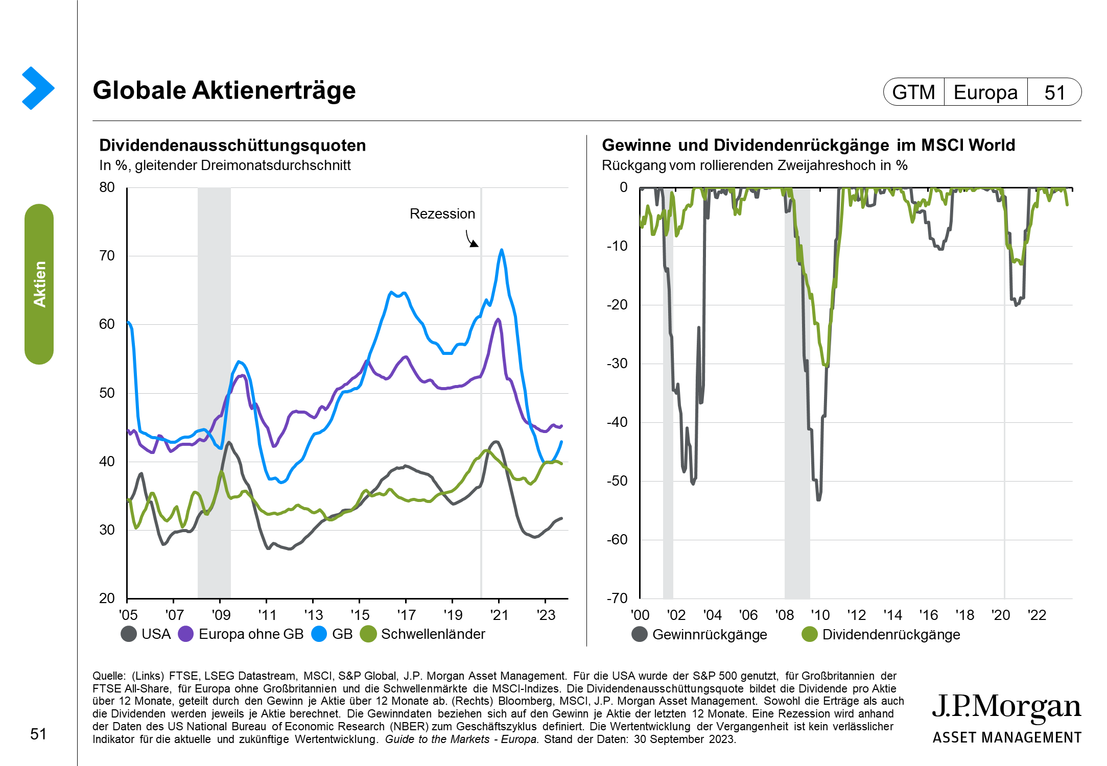 Aus diesem Grund würden wir uns auf das Qualitätssegment des Marktes und auf Dividenden zahlende Aktien konzentrieren, die angesichts niedriger Ausschüttungsquoten wahrscheinlich in der Lage sein werden, ihre Dividenden aufrechtzuerhalten (Seiten 53 und 51).