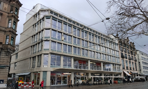 Das renovierte Geschäftsgebäude an exponierter Lage, von der Besitzerin Swiss Prime Site «The 12» getauft, wurde im vergangenen Dezember fertig gestellt. Im Erdgeschoss bietet Globus ein Deli- und Gastronomieangebot. Hier kostet das Pausen-Baguette 12.50 Franken. Im ersten Stock befindet sich ein Fitness-Studio und man sieht Menschen, die sich auf Indoor-Bikes und Laufbändern ins Schwitzen bringen. Und wem die Arbeit im Asset Management nicht aufregend genug ist, kann danach nebenan im Corso-Kino den neusten Blockbuster anschauen.