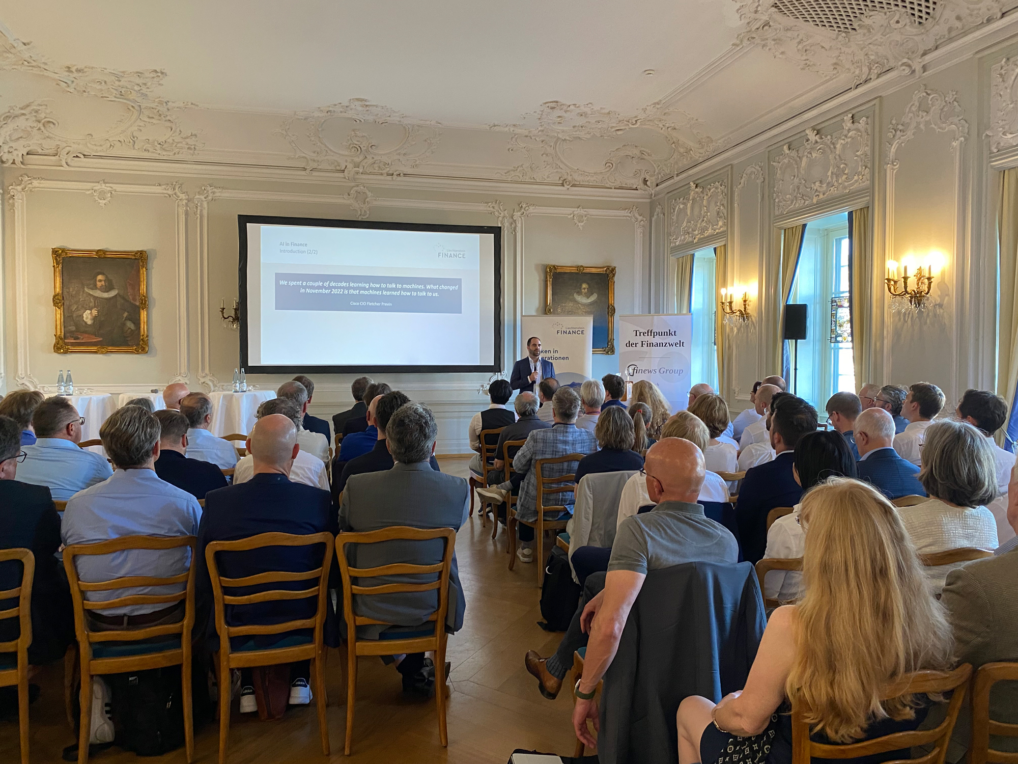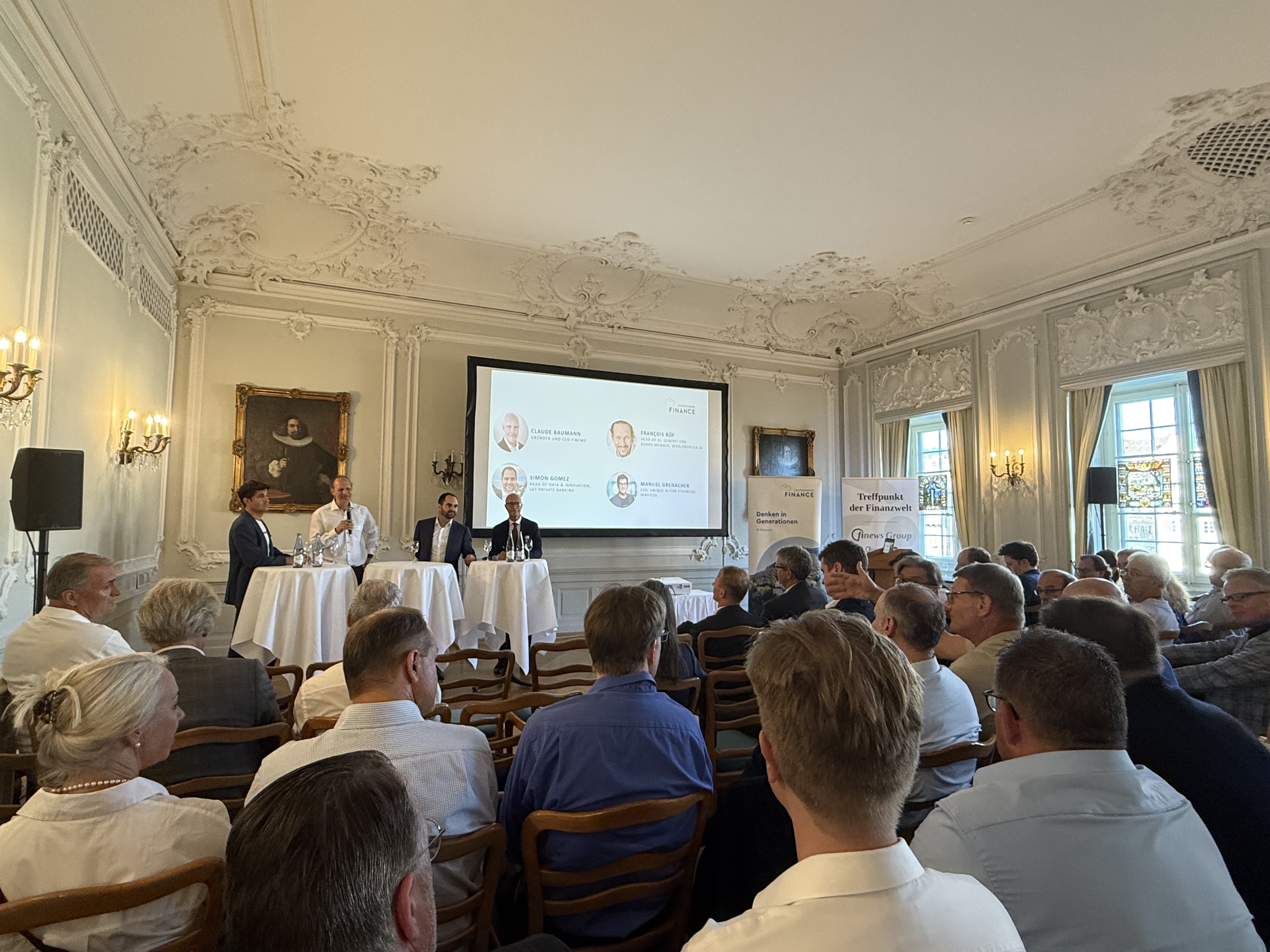 Wertvollen Input zum Thema Künstliche Intelligenz (KI) lieferten an dem Abend drei Digitalisierungs-Experten der ersten Stunde: Simon Gomez, der für die liechtensteinische Fürstenbank LGT die KI-Strategie verantwortet; der Tech-Pionier François Rüf, der kürzlich ein KI-Startup gemeinsam mit dem früheren Vontobel-CEO Zeno Staub gegründet hat, sowie Manuel Grenacher, ein langjähriger Entrepreneur, der als CEO und Mitgründer von Unique AI ein rasant wachsendes Unternehmen vorantreibt, das Beratungsdienstleistungen im Bereich KI gezielt für Finanzinstitute anbietet.