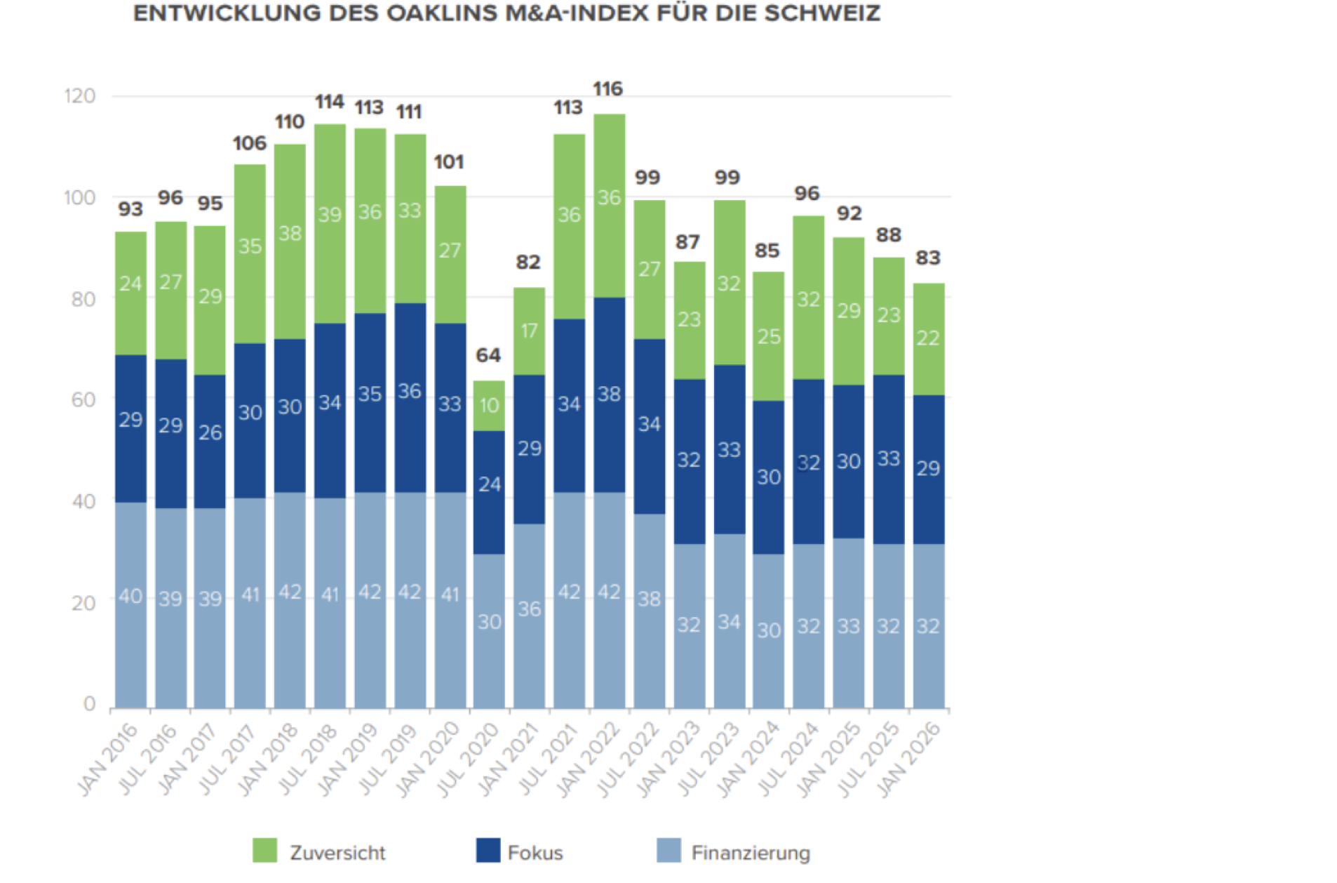 Der Index zeigt die prognostizierte Entwicklung der M&A-Aktivität in den kommenden sechs bis zwölf Monaten mit
