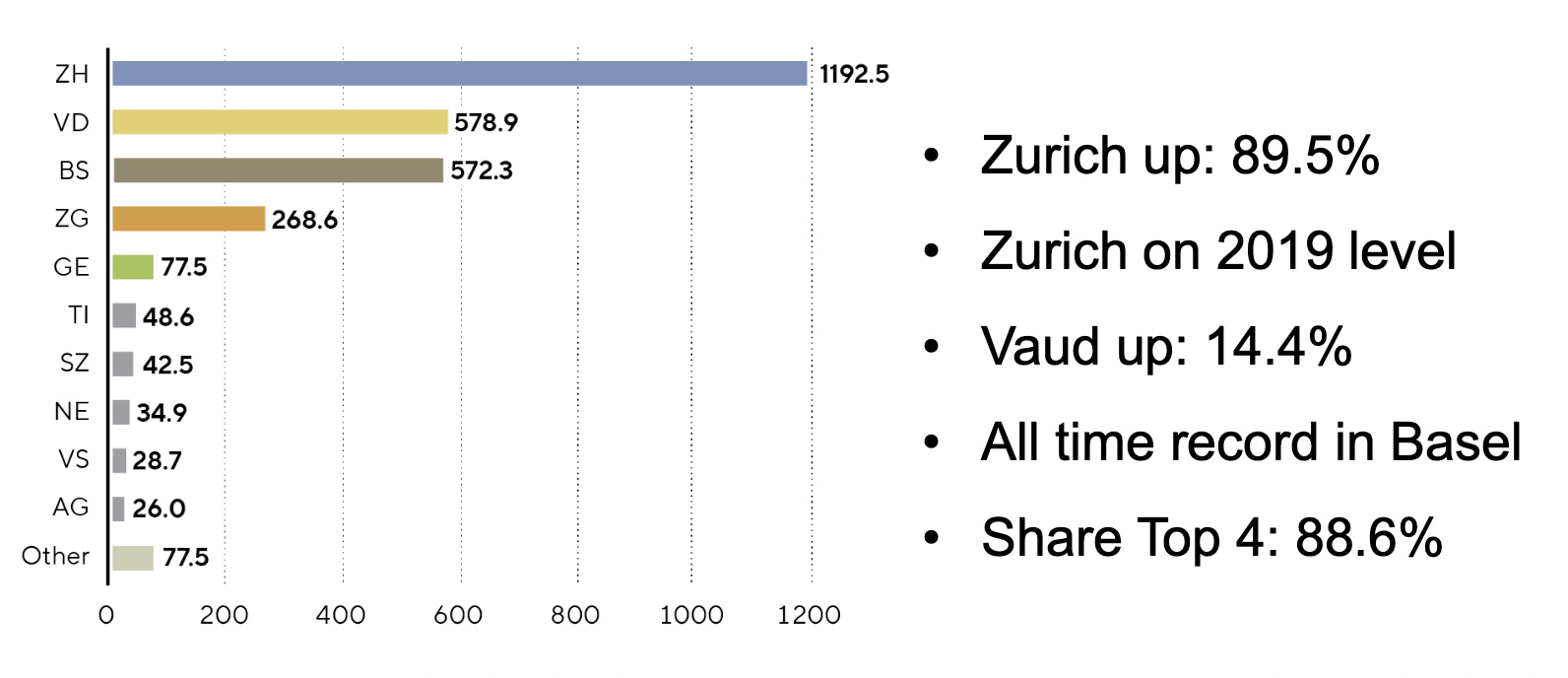 Regional betrachtet stellen Zürcher Unternehmen weiter den Schwerpunkt der Schweizer Start-Up-Szene dar. Das Volumen stieg hier 2025 um rund 90 Prozent auf 1,19 Milliarden Franken und liege damit wieder auf dem Level von 2019. Basel habe mit einem Volumen von 572 Millionen Franken einen Rekordwert erreicht.