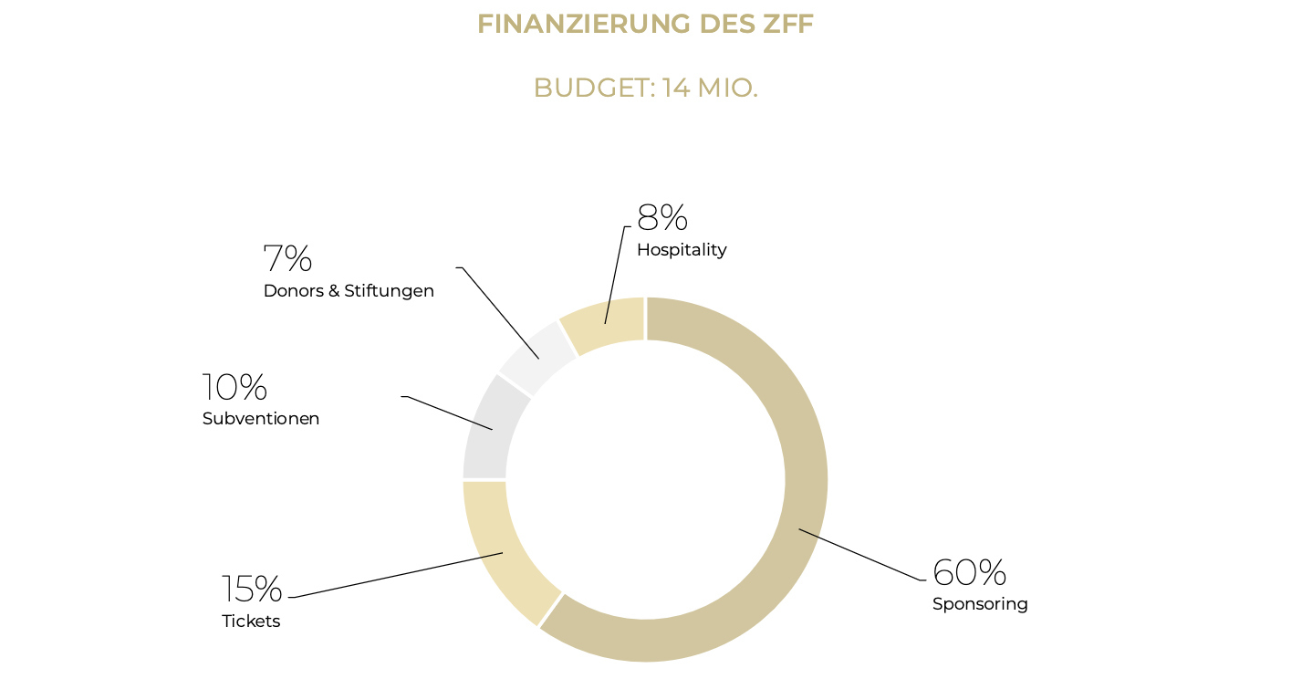 Bei der Finanzierung des ZFF-Budgets von insgesamt rund 14 Millionen Franken macht das Sponsoring mit rund 60 Prozent den grössten Posten aus. Hier spielen die UBS und Mercedes-Benz als Hauptsponsoren eine wichtige Rolle. Auch die NZZ unterstützt das ZFF als Main Partner bis 2027.»