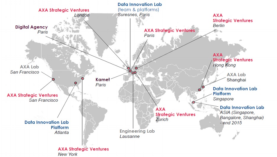 Für Axa ist dies erst der Anfang. In naher Zukunft sollen weitere digitale Meilensteine erreicht werden, und zwar in Kooperation mit Insurtechs, wie Wahl in ihrem Vortrag betonte. Dafür hat Axa weltweit diverse Innovations Labs errichtet – eines davon befindet sich in Lausanne (siehe Grafik). Weiter stellt Axa Insurtechs Risikokapital in der Höhe von 230 Millionen Euro zur Verfügung.