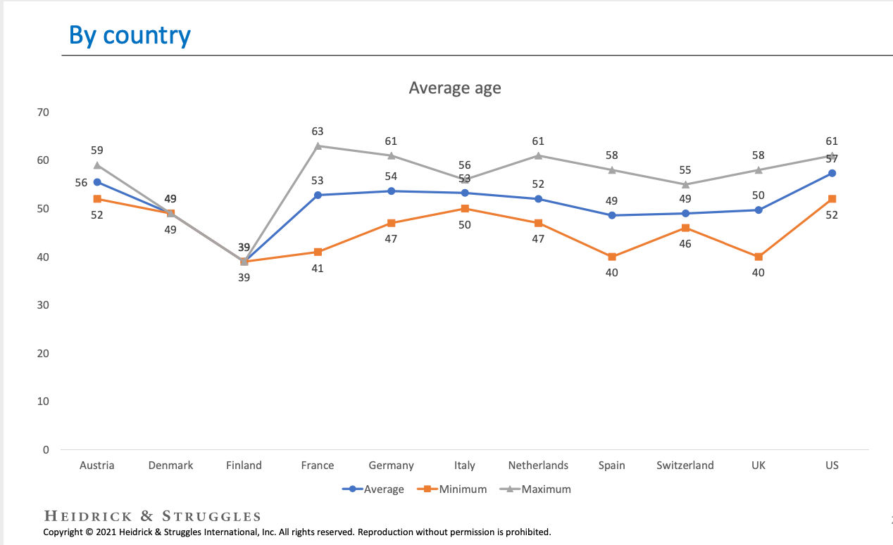 Bei der Altersstruktur fällt die Schweiz mit dem Höchstalter 55 Jahre und dem Tiefstalter von 46 Jahren nicht aus dem Rahmen. Die älteste Frau im Einsatz kommt mit 63 Jahren aus Frankreich. Das jüngste weibliche Talent stammt aus Finnland und ist 39 Lenze alt (siehe Grafik unten).