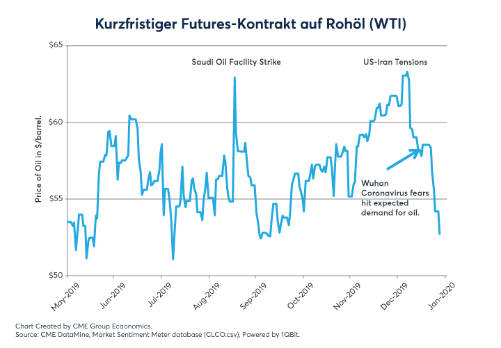 Der Rohölpreis ist in jüngster Zeit zwei Mal aufgrund geopolitischer Risiken in die Höhe geschossen – im September 2019 nach dem Drohnenangriff auf saudi-arabische Ölanlagen und im Januar 2020 infolge der Eskalation zwischen den USA und dem Iran. Beides führte zu einem abrupten Ölpreisanstieg (um 5 bis 8 Dollar pro Barrel) und kurz darauf wieder zu einem schnellen Rückgang auf das vorige Niveau oder noch tiefer.