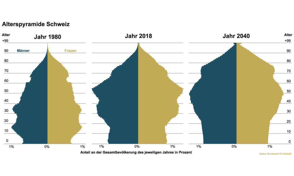 Allerdings mahlen die politischen Mühlen langsam, obwohl die Probleme mannigfaltig und dringlich sind. Aufgrund des anhaltenden Negativzins-Umfelds können langfristig nur deutlich geringere Renditen auf das Pensionskassenvermögen erzielt werden als in der Vergangenheit. Die Überalterung der Gesellschaft führt zudem dazu, dass das Heer der Rentenempfänger wächst, während die Zahl der Beitragszahler abnimmt.