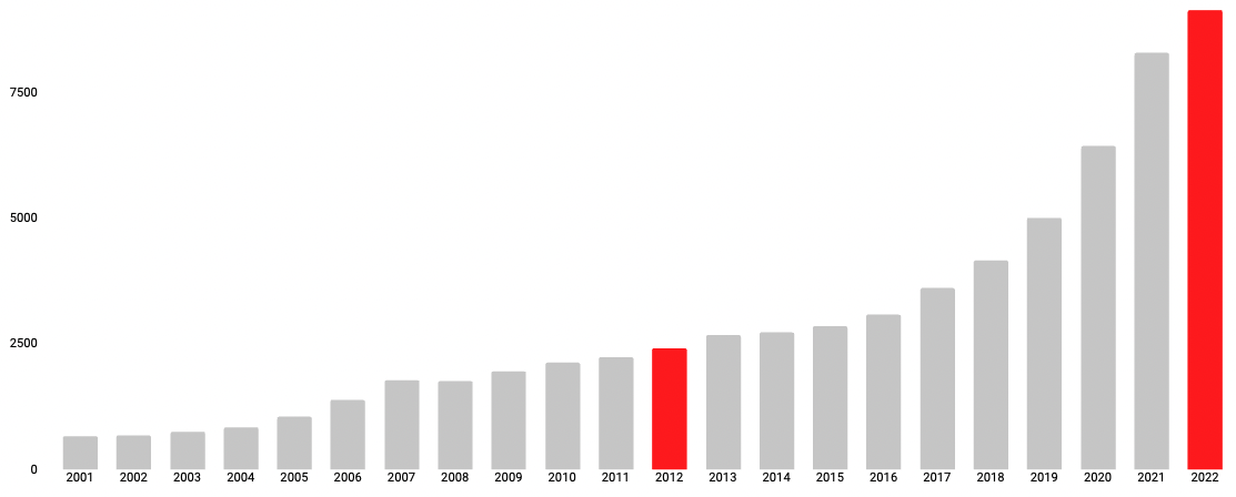 Der Sekundärmarkt ist seit 2012 deutlich gewachsen: 2012 war dieses Anlagesegment mit einem geschätzten jährlichen Transaktionsvolumen von rund 25 Milliarden Dollar noch relativ klein; 2022 wurden hingegen Transaktionen mit einem Gesamtvolumen von mehr als 110 Milliarden Dollar abgewickelt.
