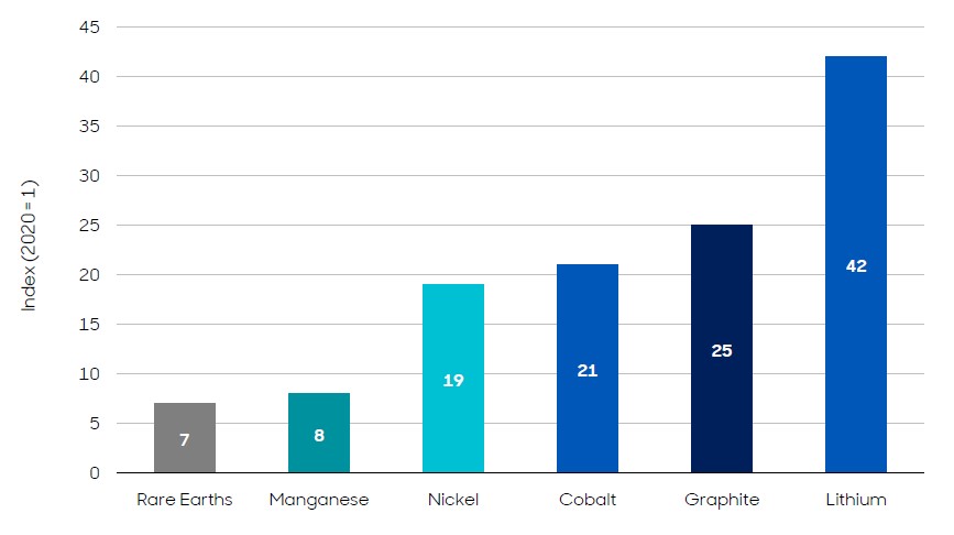 Kupfer, Nickel, Aluminium, Wasserstoff, Lithium, Seltene Erden, Uran und Kobalt sind entscheidend für die Herstellung und den Betrieb sauberer Energietechnologien und -infrastrukturen. Die Nachfrage nach diesen Mineralien wird bis 2050 voraussichtlich um das Sechsfache steigen.