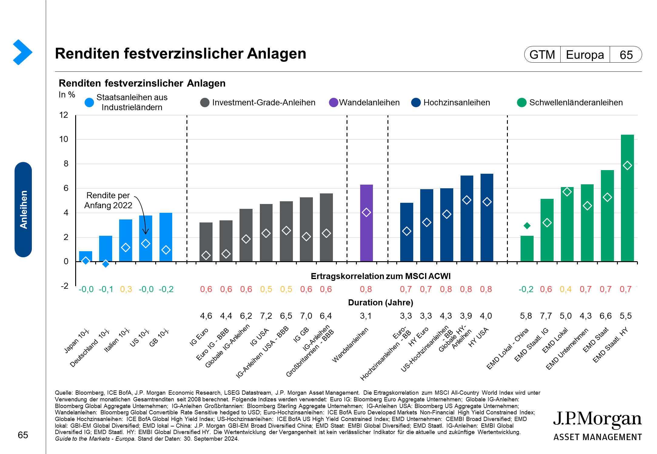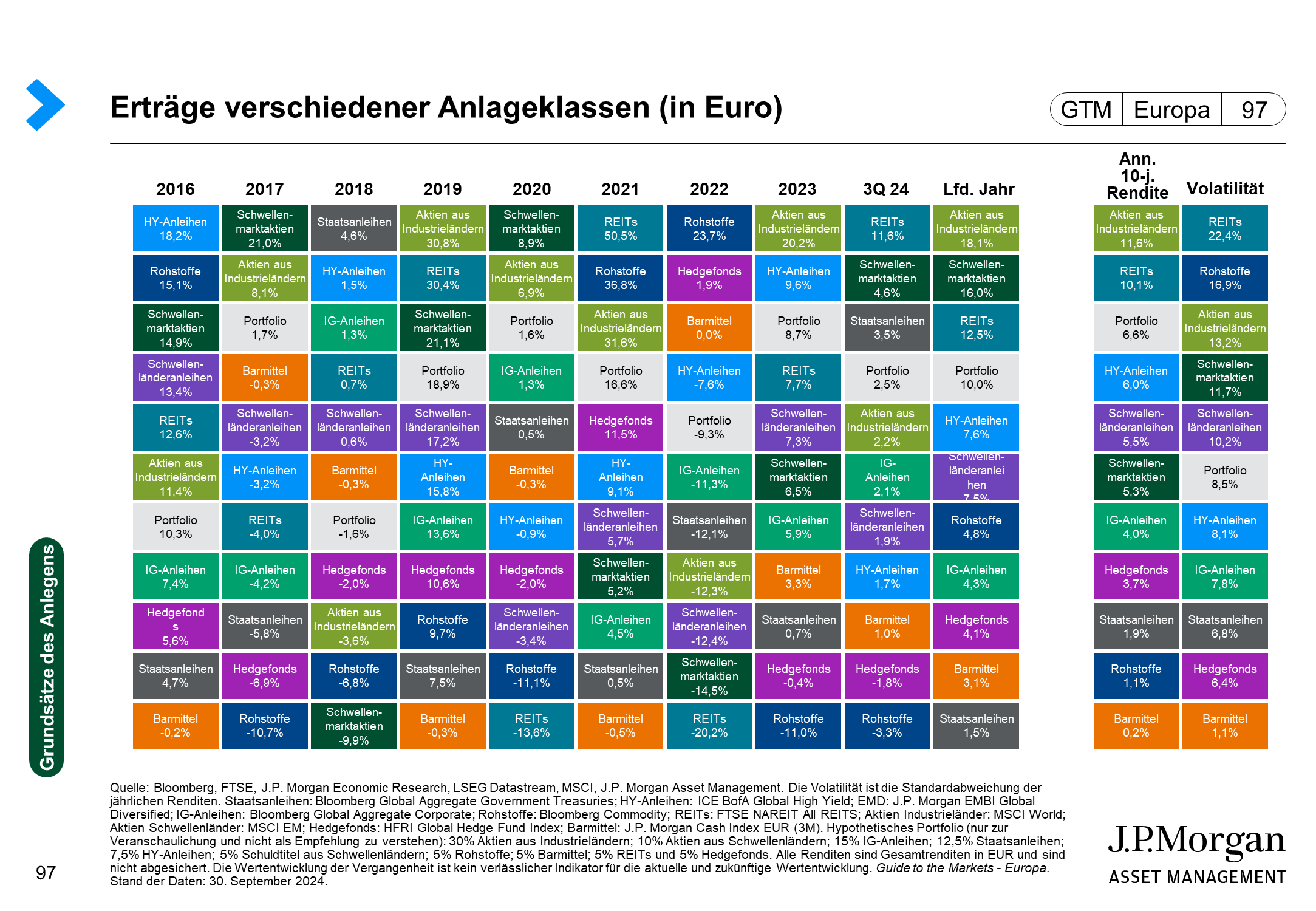 J.P. Morgan Asset Management hat den «Guide to the Markets» entwickelt, um Anlegern und Kundenberatern die besten Möglichkeiten zu bieten, erfolgreiche Investmententscheide zu treffen.
