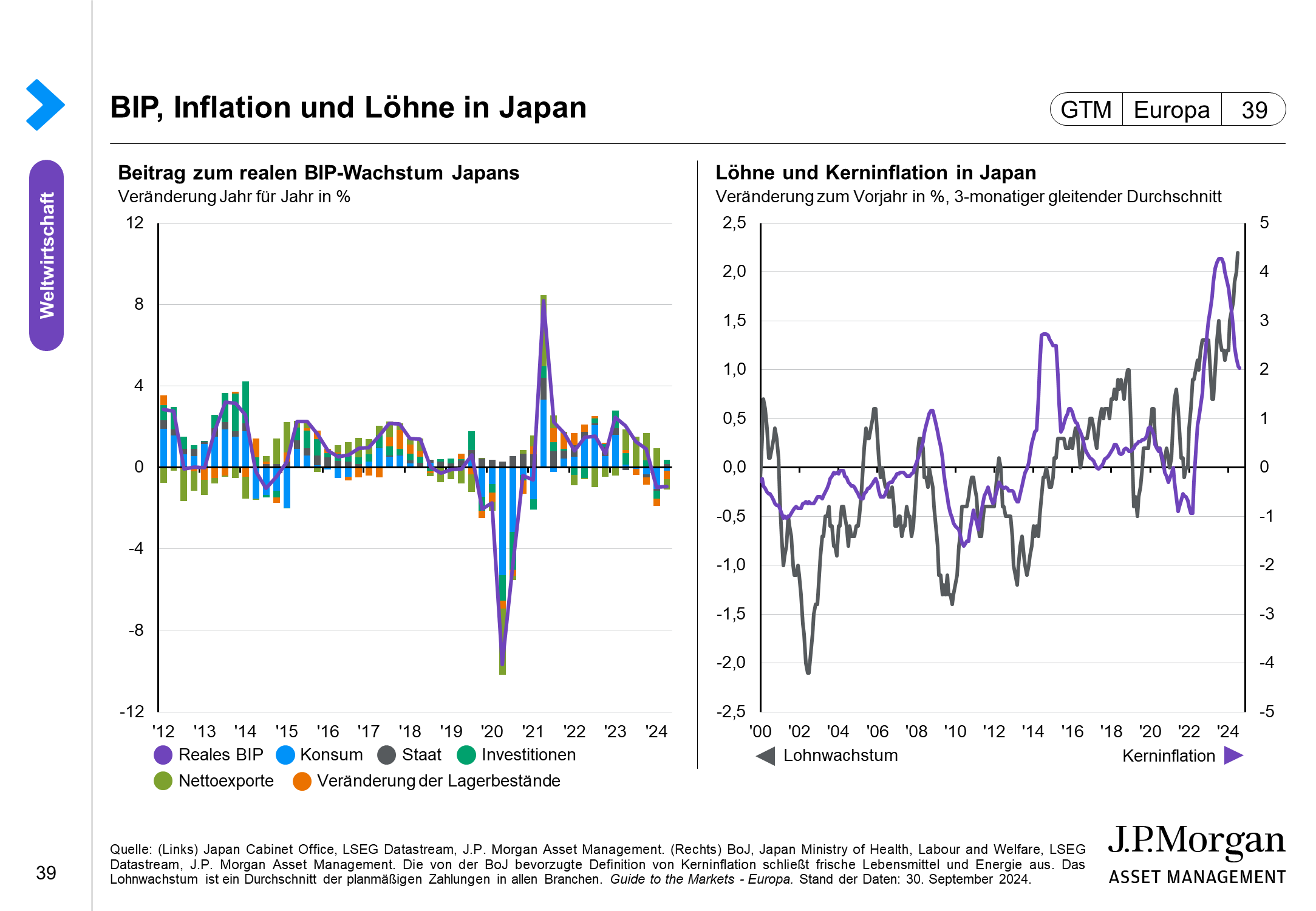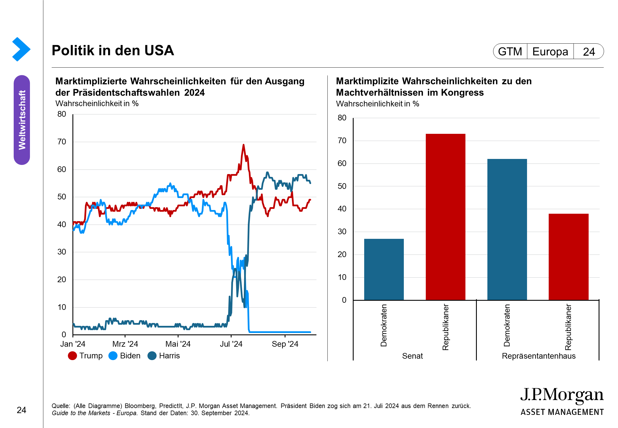 Die US-Präsidentschaftswahl, geopolitische Ereignisse, die Entwicklung im Bereich der Künstlichen Intelligenz (KI) und die Abwicklung der japanischen Carry-Trades könnten alle erhebliche Auswirkungen auf die Märkte haben (Seiten 24, 39, 63).
