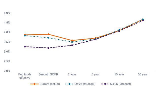 Obwohl sich frühere Hoffnungen auf aggressivere Zinssenkungen nicht vollständig erfüllt haben – was zum Teil auf die hartnäckigere Inflation unter «Trump 2.0» zurückzuführen ist, verbleibt die Fed auf Kurs, die Zinsen in den Jahren 2025 und 2026 weiter zu senken, wenn auch in einem weitaus langsameren Tempo als Experten es 2024 vorhergesagt hatten.