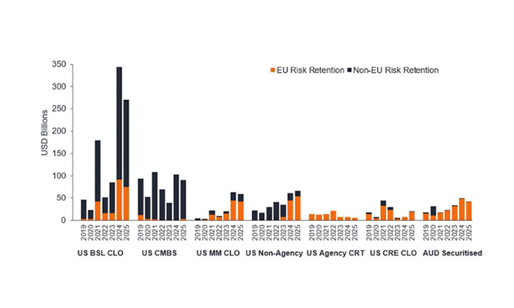 Eine der bedeutendsten Entwicklungen ist der Anstieg der EU-konformen verbrieften Emissionen aus nichteuropäischen Ländern. Die Möglichkeit für in Europa ansässige Anleger, wirklich global diversifizierte verbriefte Portfolios aufzulegen, wurde nach der Umsetzung der europäischen Verbriefungsverordnung im Jahr 2019 stark eingeschränkt. Die globalen Emittenten von Verbriefungen erkennen jedoch zunehmend die Vorteile, die sich aus einer Strukturierung ihrer Geschäfte nach europäischen Anforderungen ergeben, da sich so die Reichweite ihrer Anlegerbasis erhöht.