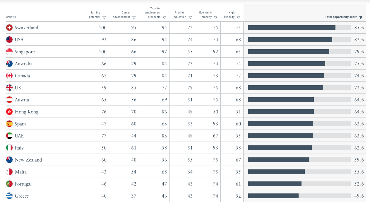 Schweiz als Spitzenreiterin im «Opportunity Index»