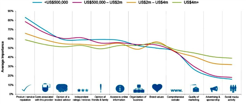 Aus der diesjährigen Umfrage unter 3'025 HNWI rund um den Globus ging unter anderem hervor, dass Superreiche vor ihrem definitiven Entscheid mit mehreren potenziellen Anbietern im Gespräch sind. Die Anzahl Gespräche ist abhängig von der Höhe der Vermögen: