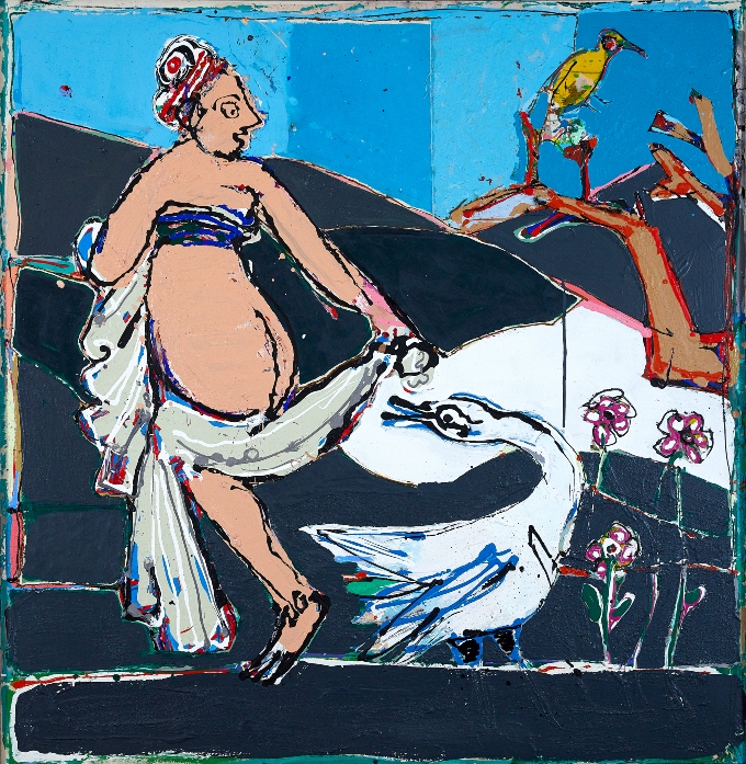John Kiki, Leda and the Swan, 2008, 173 x 169 cm. (Bild: Galerie WOS)
