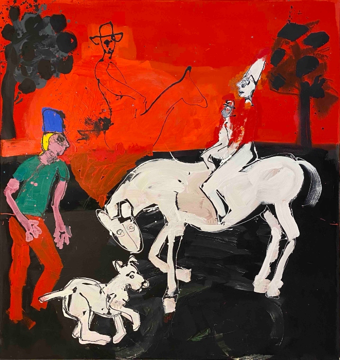 John Kiki, «Meeting on Bridleway», 2016, 200 x 188 cm. (Bild: Galerie WOS)