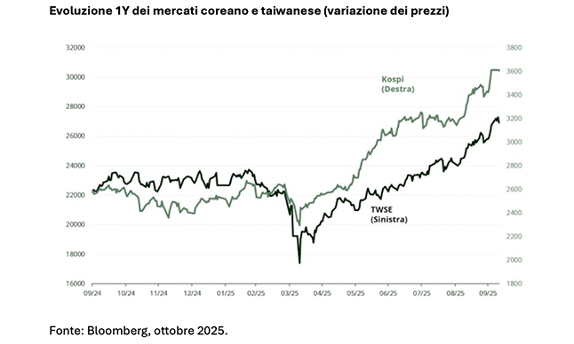 La crescita degli utili a Taiwan e in Corea del Sud supera ora quella di tutti i principali paesi asiatici, ma i portafogli globali rimangono strutturalmente sottopesati, lasciando numerose opportunità ancora da scoprire.